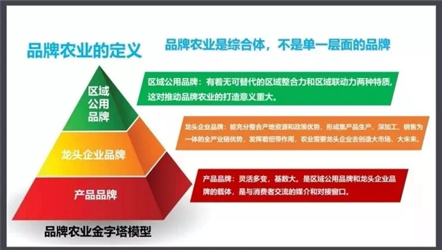 李志起表示,做好品牌農(nóng)業(yè),并非一朝一夕,而是系統(tǒng)性工程。品牌農(nóng)業(yè)是綜合體,不是單一層面的品牌。品牌農(nóng)業(yè)應是由區(qū)域公用品牌、龍頭企業(yè)品牌和產(chǎn)業(yè)品牌組成的由上至下的三級金字塔。