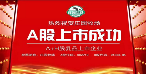 2018-03-12 16:41:002017年10月31日上午,西北乳業(yè)的排頭兵——蘭州莊園牧場(A股票代碼:002910)正式登陸A股市場,成為國內(nèi)首家A+H股乳品上市企業(yè)!此次登陸深圳證券交易所是蘭州莊園牧場股份有限公司發(fā)展史上的一塊里程碑,上市儀式在深圳證券交易所舉行,志起未來作為戰(zhàn)略合作伙伴,一路見證蘭州莊園牧場由產(chǎn)業(yè)向資本的嬗變之路。 蘭州莊園牧場股份有限公司董事長馬紅富在上市儀式上表示,偉大的組織都會有一個高遠(yuǎn)的目標(biāo),莊園牧場始終以“奉獻(xiàn)精良品質(zhì),造就時代品牌”為使命,努力塑造西部知名品牌,建設(shè)全體員工共同信仰的現(xiàn)代企業(yè)文化,力爭成為中國一流的乳品企業(yè)。歷經(jīng)十多年的拼搏奮進(jìn),莊園牧場由一家地處國家級貧困縣的小型民營企業(yè)成長為了區(qū)域市場龍頭企業(yè)。今天,在深交所成功上市,標(biāo)志著莊園牧場距離這個夢想的實現(xiàn)又更進(jìn)一步!